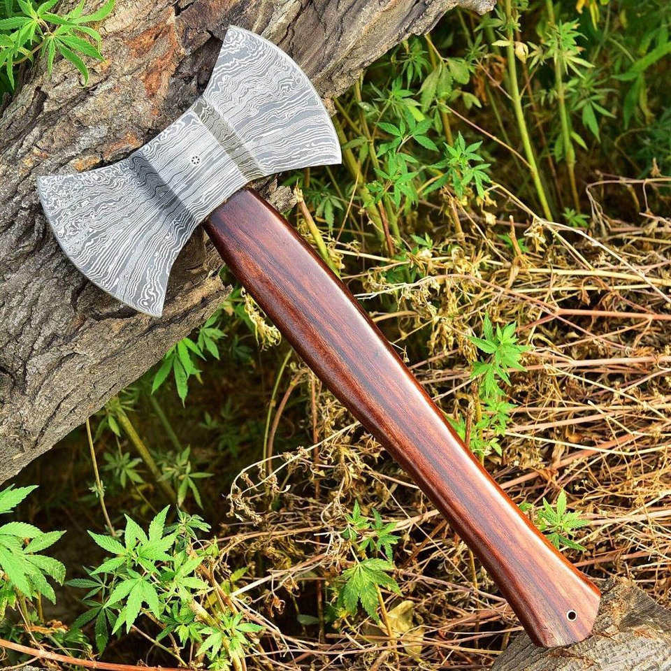 Steel Craft International Custom DIY Damascus Steel Flat Backed Felling Axe Head Wood Handle Survival Camping Hunting Bushcraft