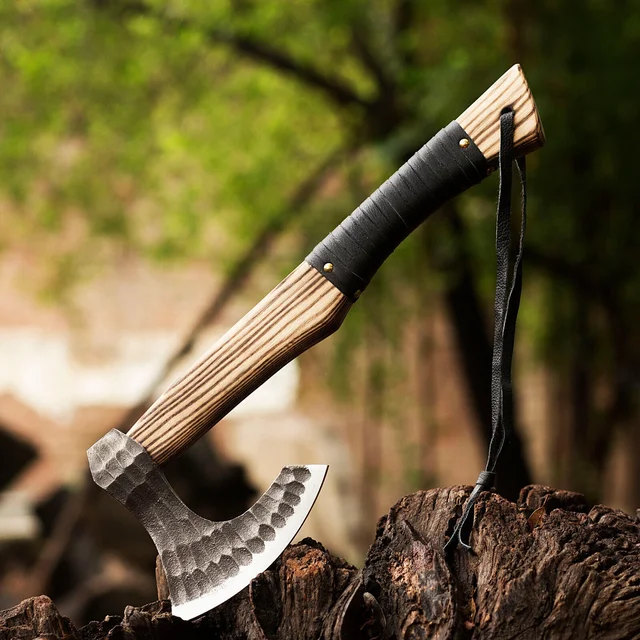 Steel Craft International Damascus Steel Industrial Grade Tomahawk Camping Axe Ash Wood Handle Viking Axe Head High Quality