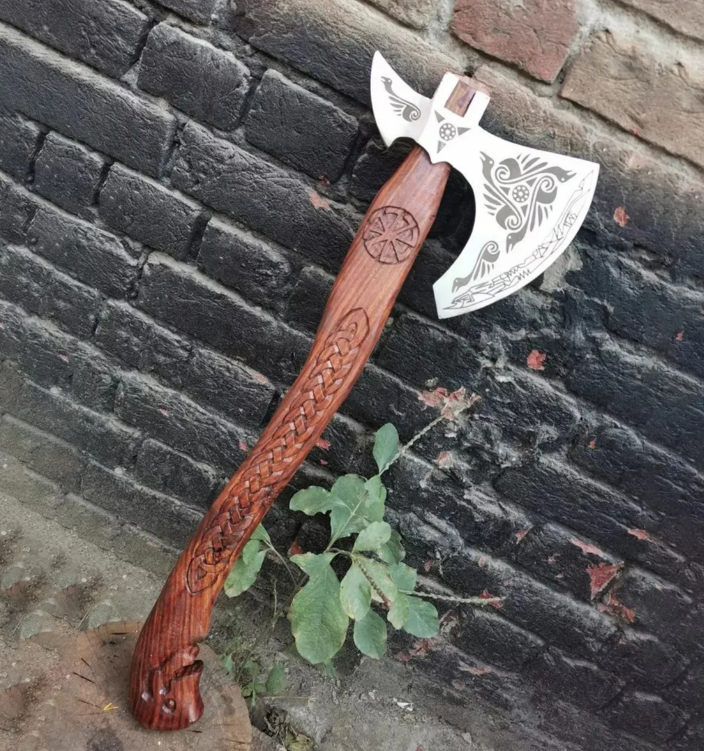 Steel Craft International Industrial Grade Tomahawks Axe Head Damascus Steel Ash Wood Handle 4 3/4 Cutting Edge 18 Inches