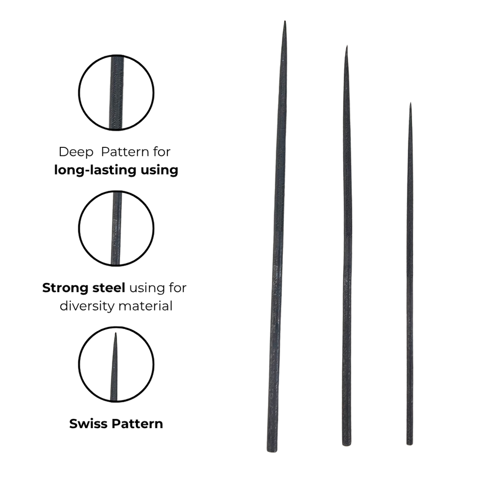 Steel DIY Needle File Set Hand File for Jewelry Wood Stone Crafting Industrial Grade 3 Sizes 155-205 mm Round File Hand Tools