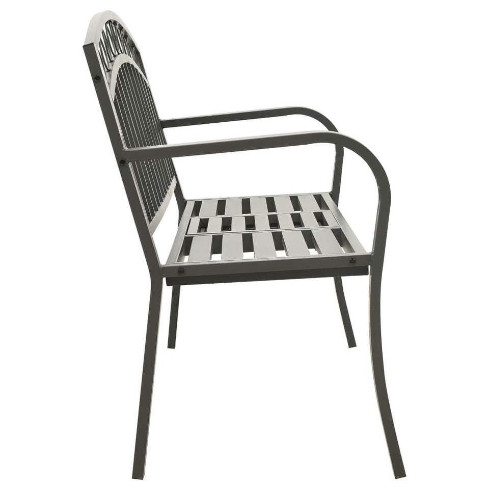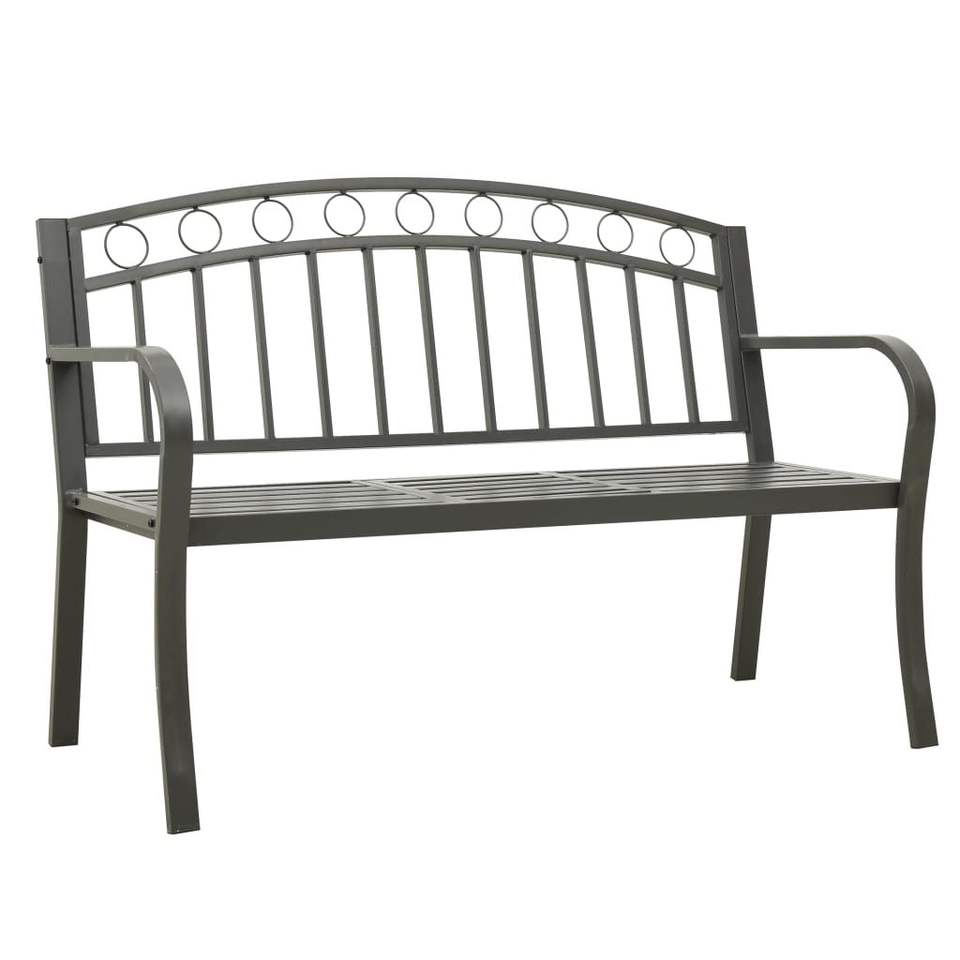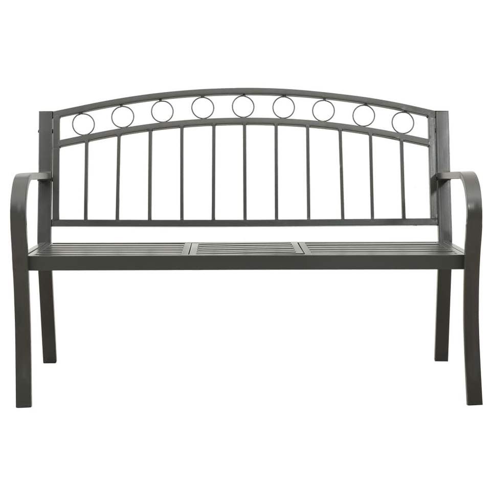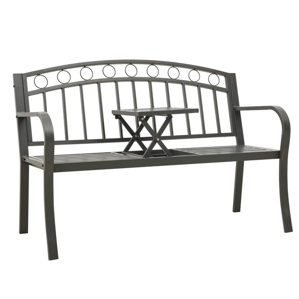 Steel Garden Bench Grey Outdoor Patio Bench With Table Contemporary Design Modern Style 2 Seater Durable Powder Coated