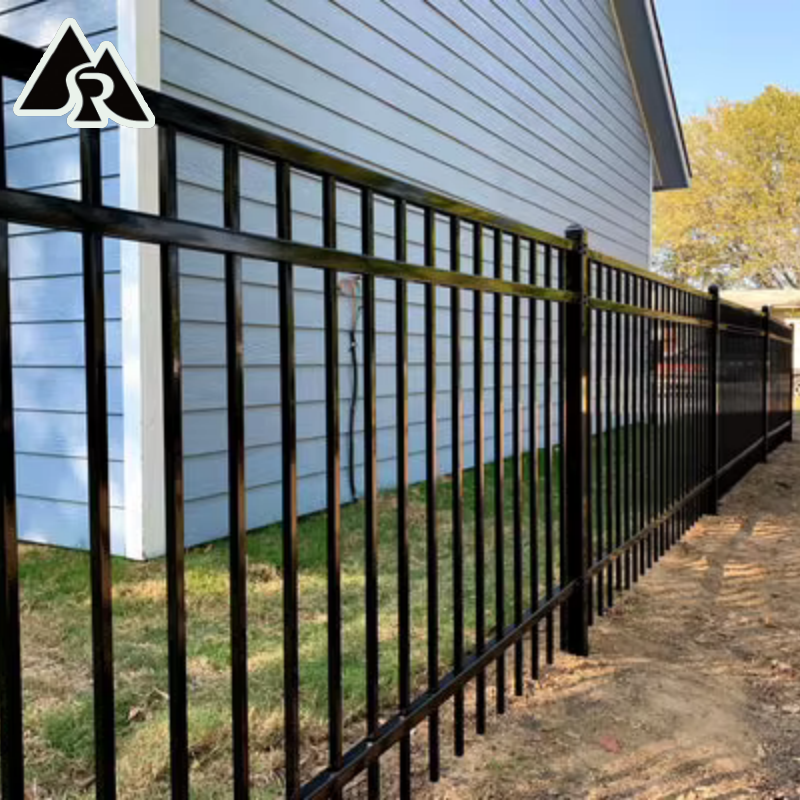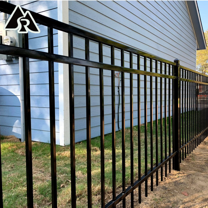 Modern Steel Garden Fence Zinc Steel Metal Picket Black Galvanized + Powder Coated 6x8 Security Wrought Iron Flat Top Waterproof
