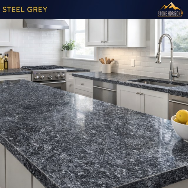 Steel Grey Granite Slab | Natural Grey Granite Stone for Flooring & Exterior Use | Export Quality