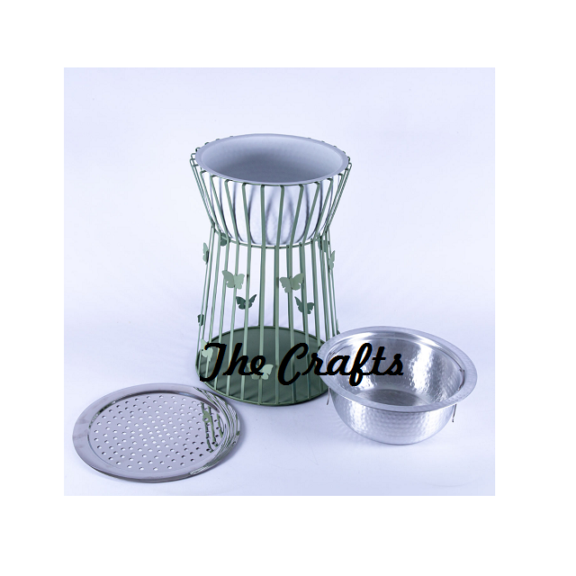 Stainless Steel Hammered Bowl And Burning Lid Fire Pit With Iron Butterfly Design Stand For Outdoor Garden Fire Pit