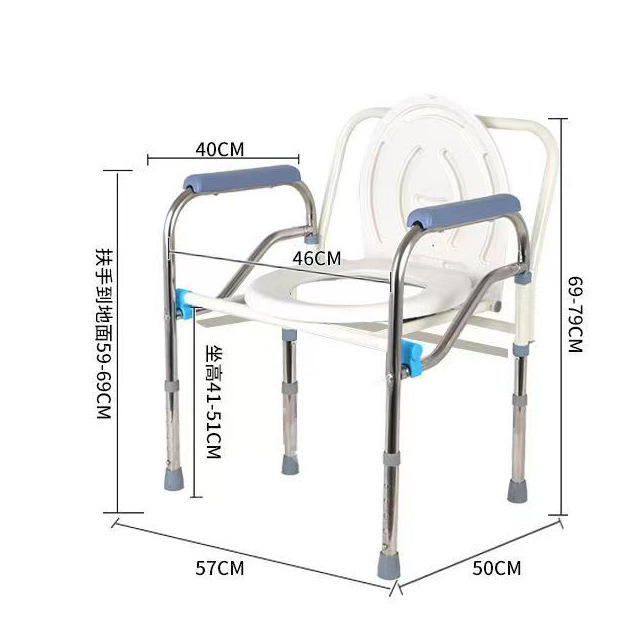 Steel Handicapped Folding Portable Adult Potty Chair for Elderly Height-adjustable Commode Toilet Chair