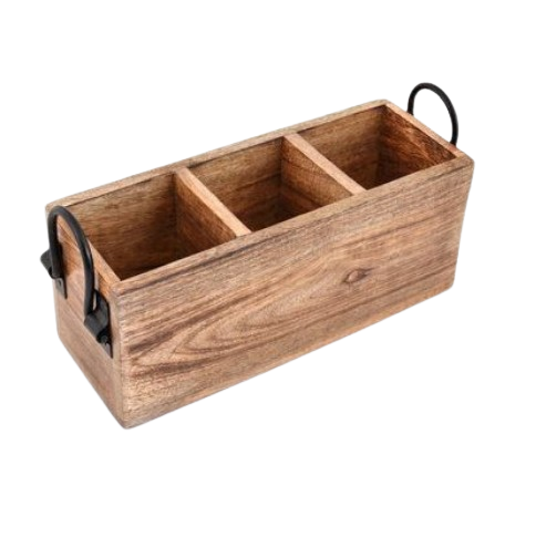 Steel Handle Mango Wood Serving Caddy Decorative Kitchen Organizer for Storage Tableware Cutlery Holder Caddy