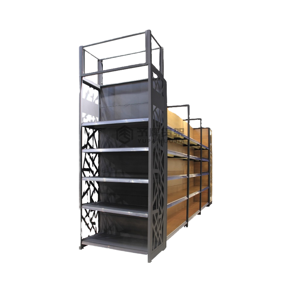 Steel Heavy Duty Double Sided Metallic Grey Supermarket Display Shelves with Solid Shelf Quick Installation for Commercial Use