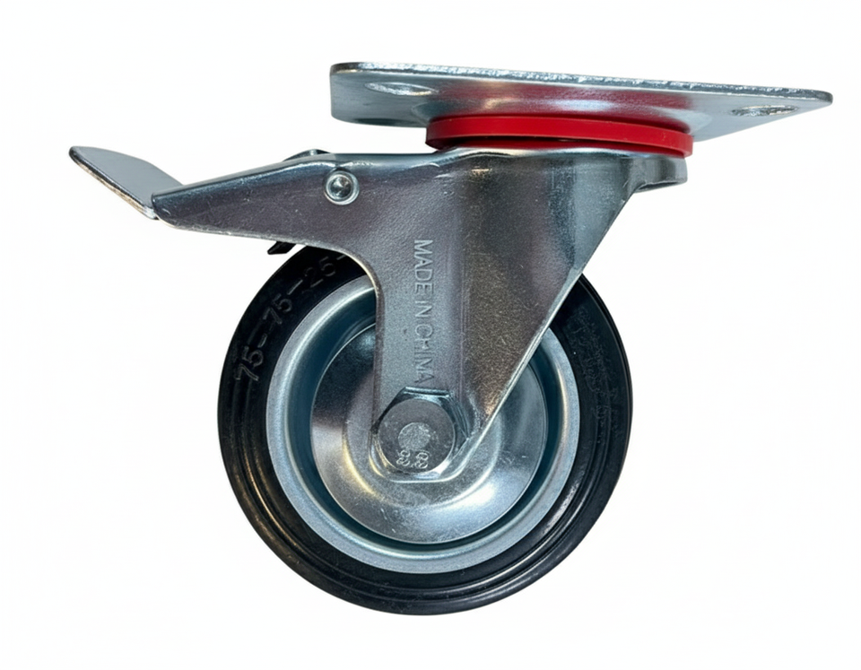 Durable Steel Hub Rubber Caster Wheels with Smooth Movement Swivel Brake Locking Mechanism for Industrial Use