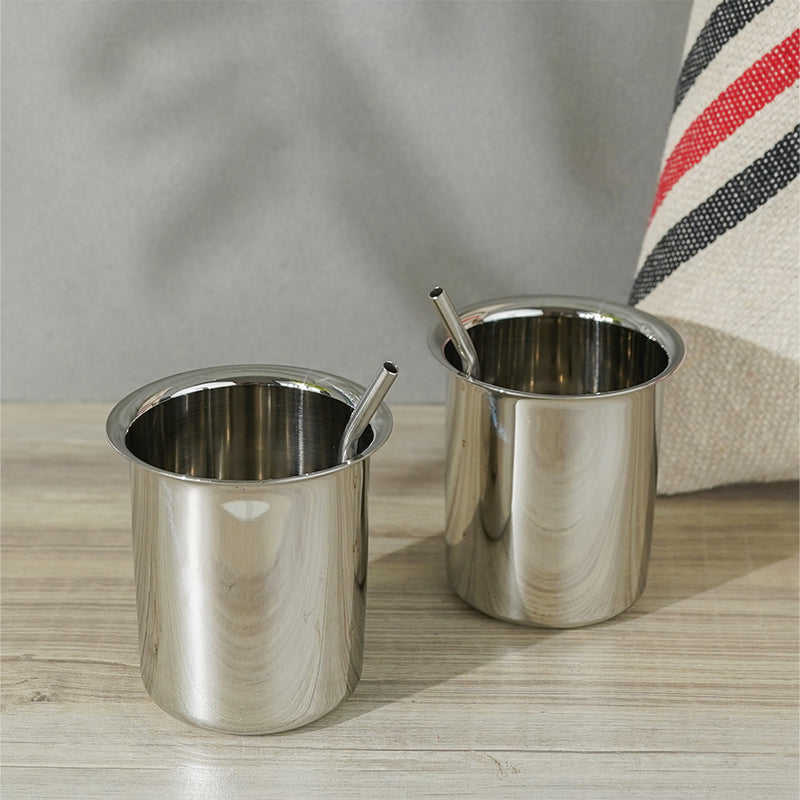 Steel Metal Glass Drinkware Stainless Steel Glass Set of 2 for Water and Cocktail Beer