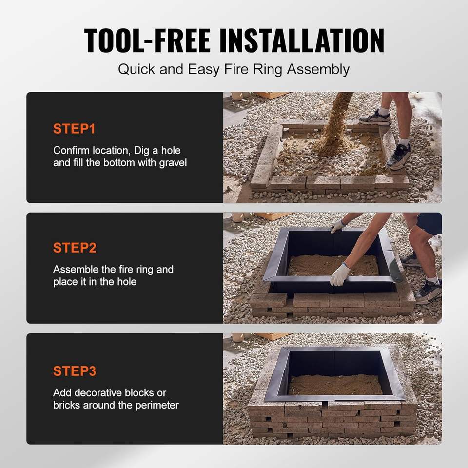 Steel Square Campfire Pit with Non Rust Coating for Backyard BBQs and Outdoor Events