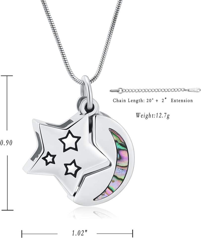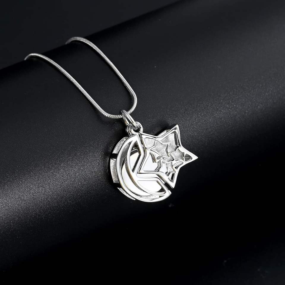 Steel Star Moon Cremation Jewelry For Ashes Cremation Urn Pendant Ashes Memorial Necklace for Man Women Human Custom Size