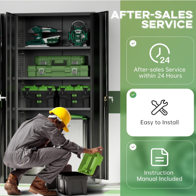 Steel Storage Cabinet with Adjustable Shelves Garage Shelving Cabinet with 2 Lockable Doors Tool Cabinet for Garage Storage