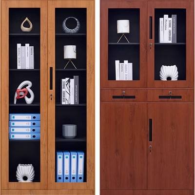 Steel Wood Grain Filing Cabinet 4 Layers Large Capacity Office Organizer Standing Type Rectangle Push Pull Doors