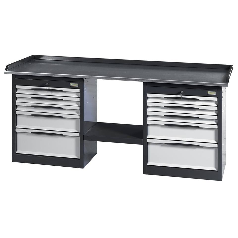 Steel Workbench With Drawers And Storage Cabinet For Workshop Use
