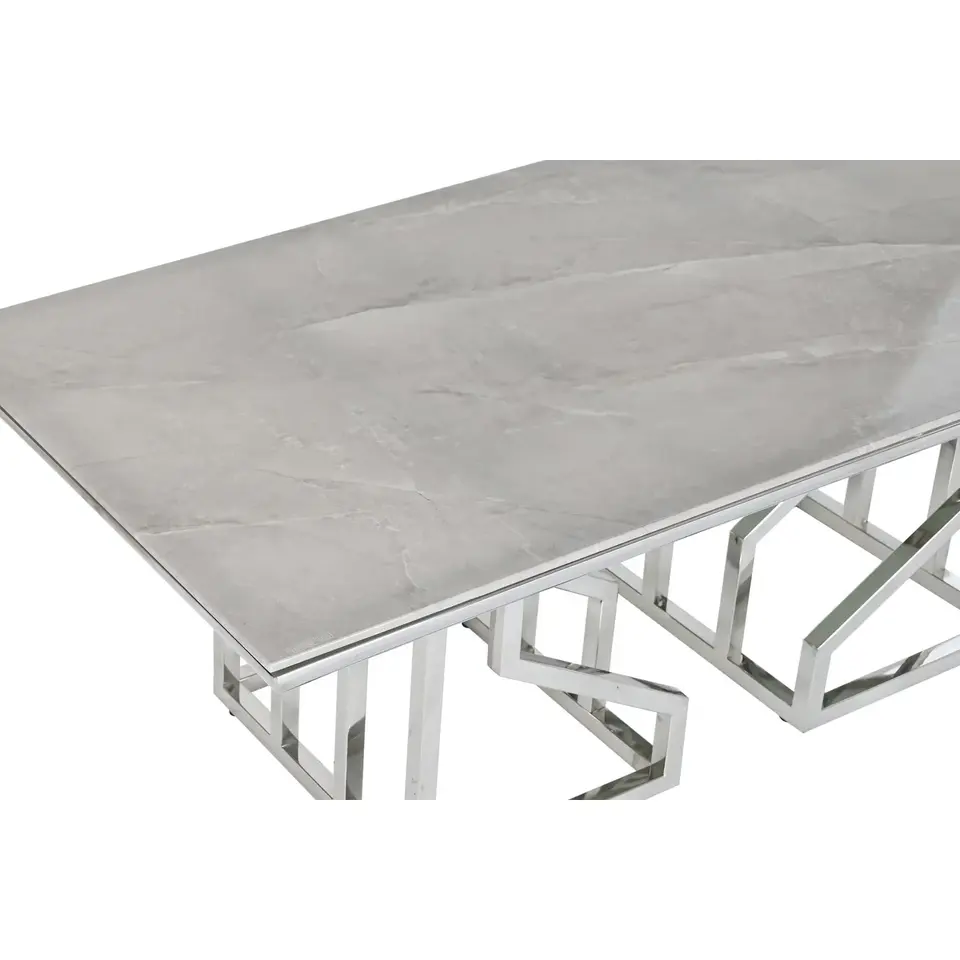 Steel and Glass Coffee Table 120x60x40cm Marble-Effect