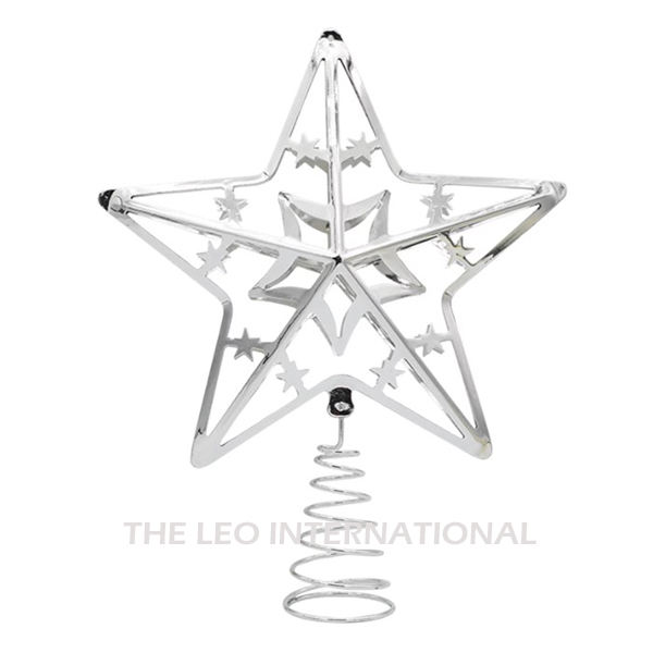Steel Metal Silver Glitter Hollow Star Shape Xmas Christmas tree topper Customized Size Decoration Festival Decor
