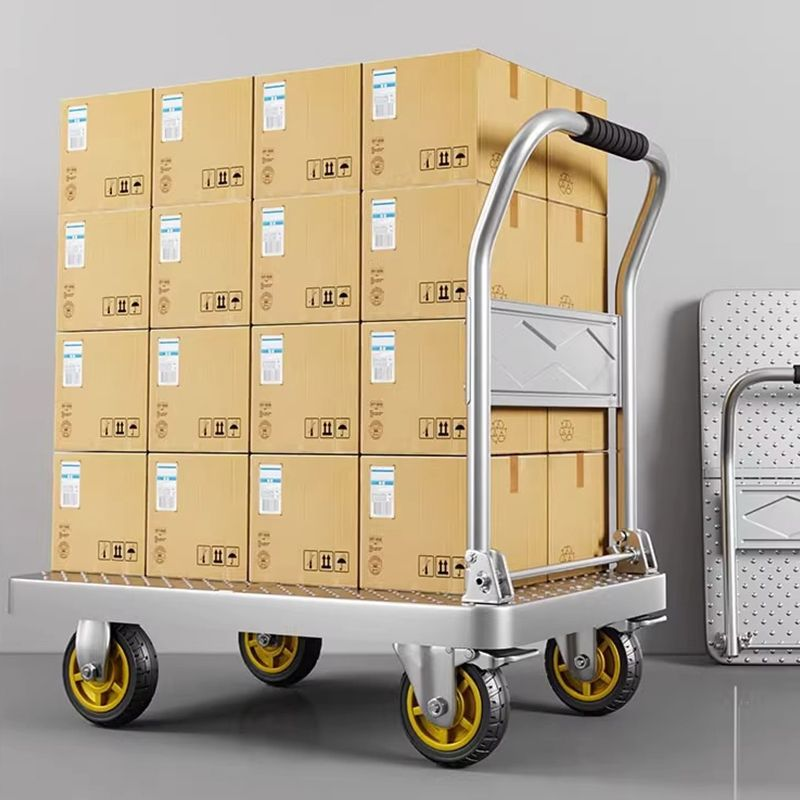 Best Recommendations Four Wheel Wear Resistant Anti Slip Steel Folding Utility Shipping Trolley Hand Push Food Cart