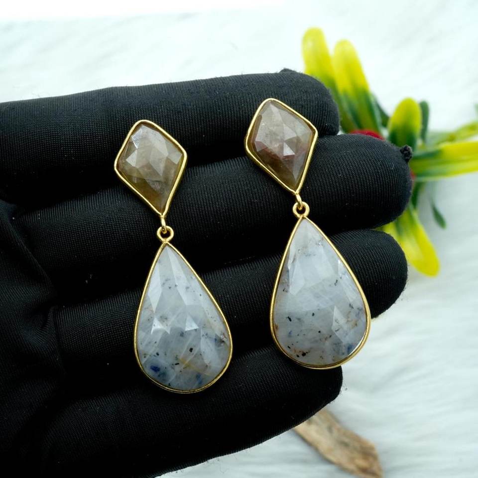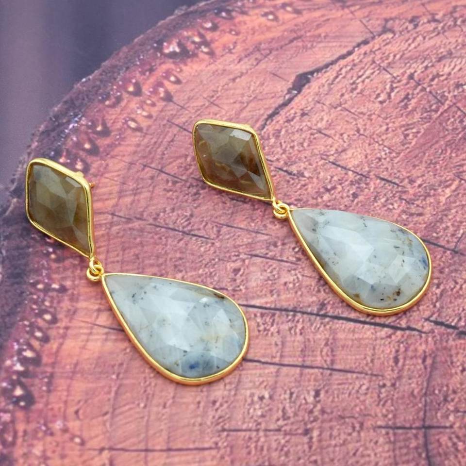 Sterling 925 Silver Natural Sapphire Earring Stud Multi Sapphire Heart-shaped Wedding Gift for Her Gold Plated