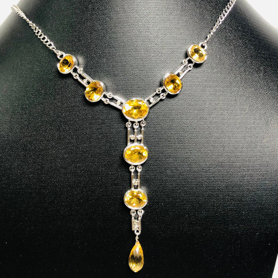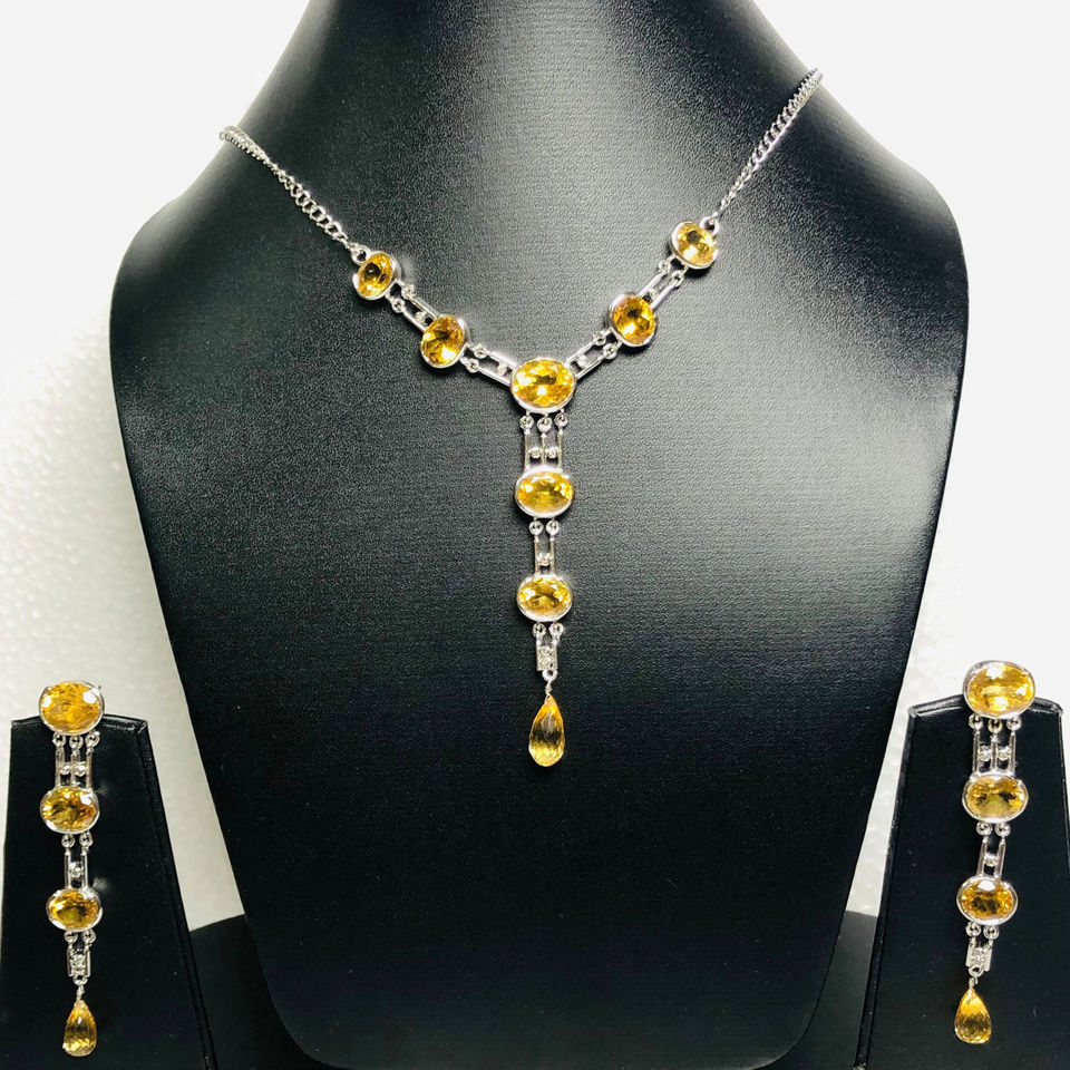 Product:Silver Necklace and Earing with Natural Citrine Gemstone