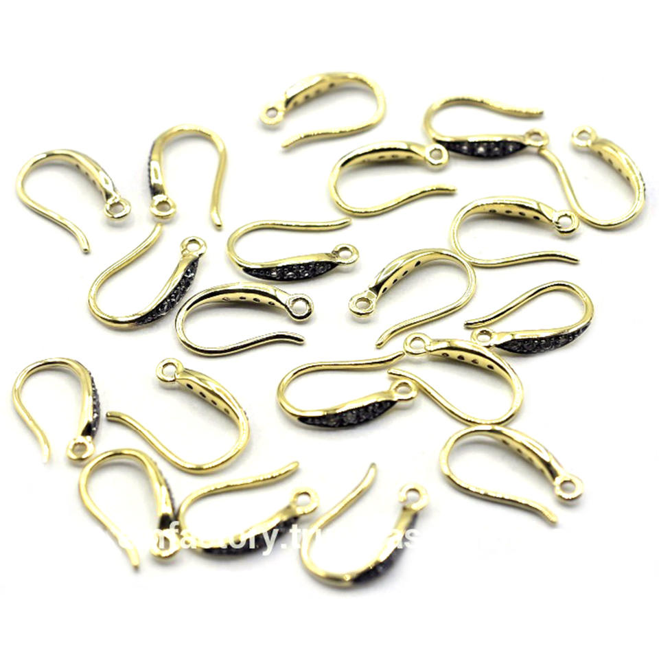 Sterling Silver 14k/18k Gold Plated Ear Wire Hooks Earring Findings with Cubic Zirconium
