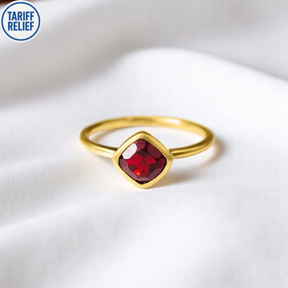 Sterling Silver 8mm Stacking Rings Gold Plated Cushion Shape Garnet Gemstone with Bezel Setting for Weddings and Parties
