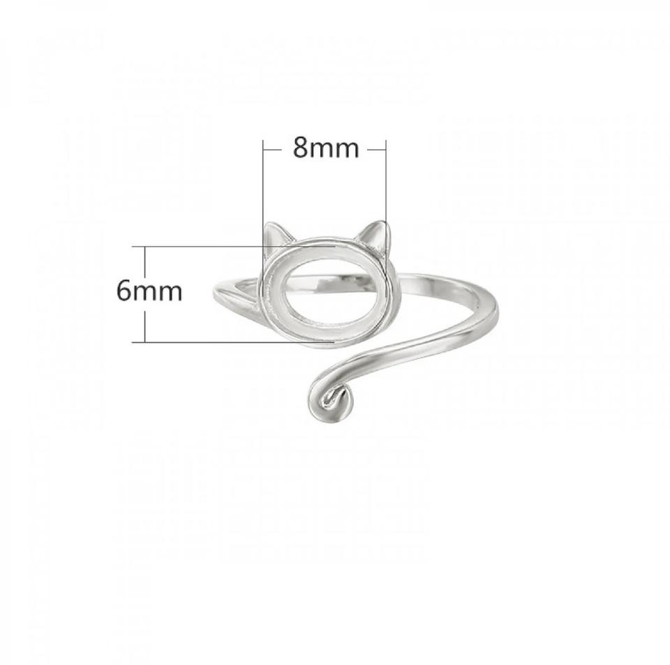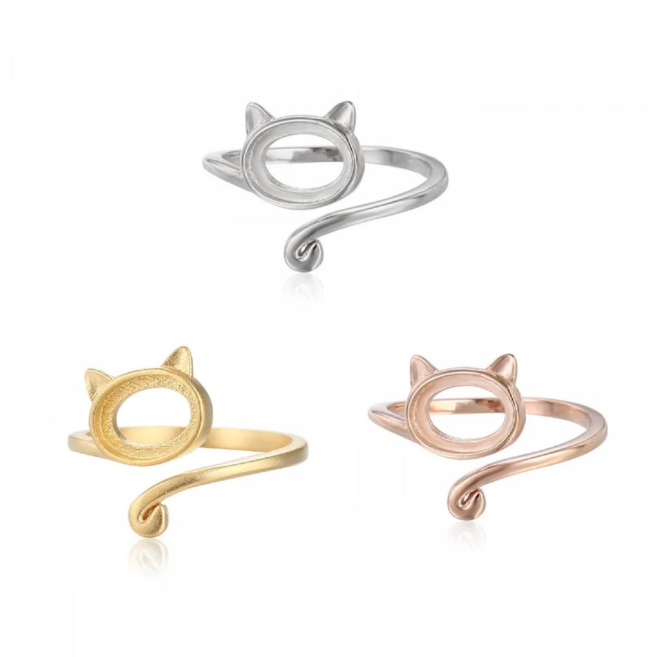 Sterling Silver 925 Adjustable Handmade Design Cat Ring Blanks Bezel Setting Fit Oval Cabochon Base Eternity Wedding Jewelry