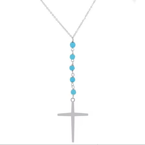 925 Sterling Silver Cross Turquoise Statement Necklace for Women Black Rhodium Plated Cross Pendant for Fine Chains Necklaces