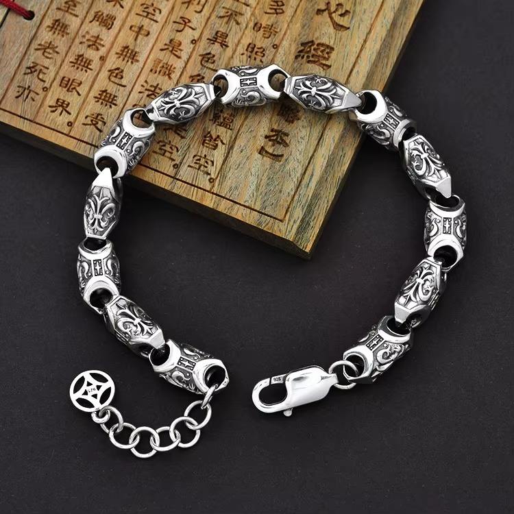 Sterling Silver Beaded Bracelet with Zircon Trendy Gift for Men Anniversary Custom Logo