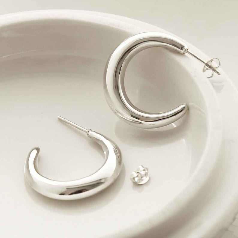 Sterling Silver Bold Hoop Stud Earrings Statement Design for Modern Elegance