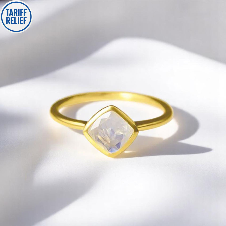 Sterling Silver Cushion Shape Rainbow Moonstone Gold Plated Birthstone 8 MM Stacking Rings