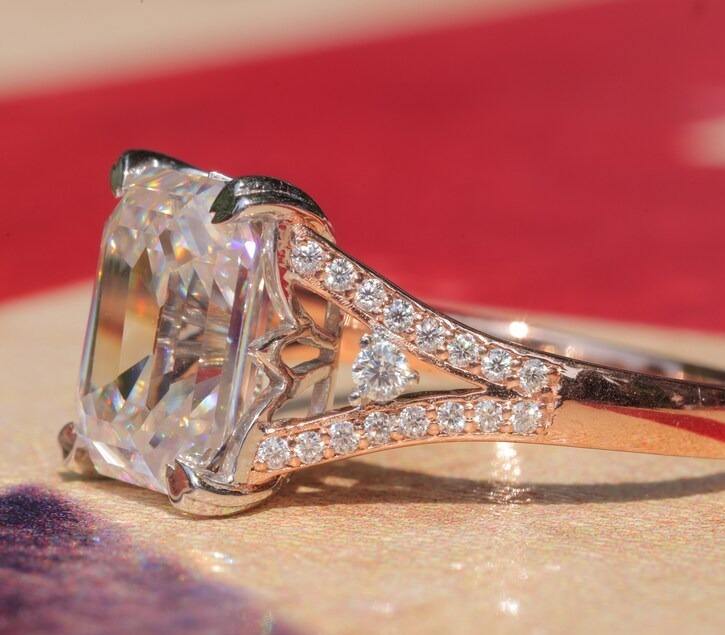 Sterling Silver Emerald Shape Moissanite Engagement Ring Customized Women Men Wedding Ring Gift for Her