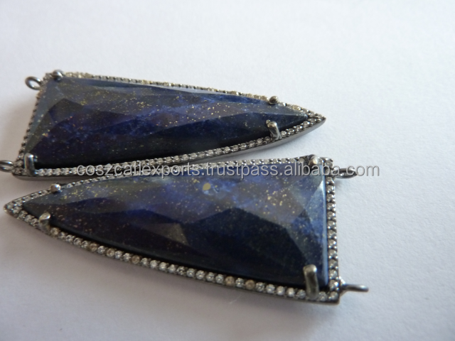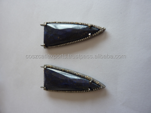 Sterling Silver Fine Jewelry Pendants & Charms Fashion Lapis Arrowhead Necklace With Diamond Connector Gold Plated Jewelry