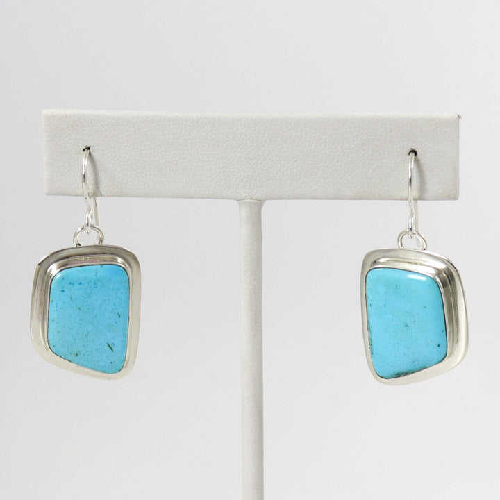 French Hook Dangle Earrings Set Gold Plated Sterling Silver Natural Kingman Turquoise Arizona Stone Beautiful Anniversary Dangle