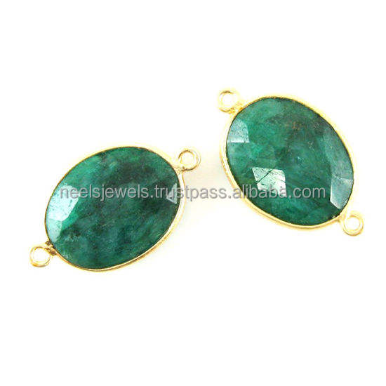 Sterling Silver Green Emerald Oval Hip Hop Bezel Connector Charm Jewelry Component Accessories Double Loop Bracelet Making