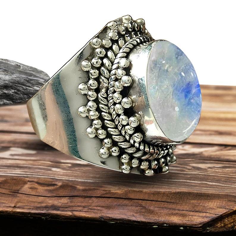 Classic 925 Sterling Silver Wedding Gift Ring Handmade Moonstone Gemstone Spinner Ring Oval Cut Blue Fire for Parties Christmas