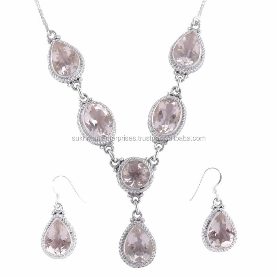 Sterling Silver Jewelry Sets Quartz Crystal Silver Jewellery Fine Fashion Jewelry Necklace and Earrings Set for Women