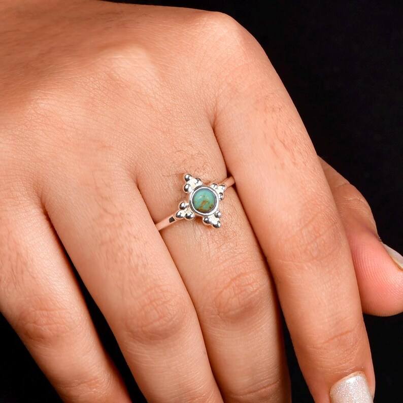 Sterling Silver Kingman Turquoise Ring Artisan Boho Floral Statement Jewelry Handmade Turquoise Gemstone Ring Gift for Her