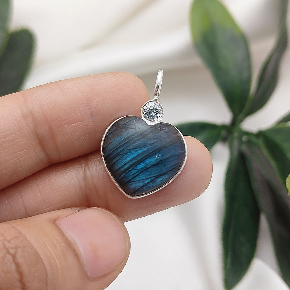 Sterling Silver Labradorite Heart Charms Pendant Necklace - CZ Bezel Love Charm Jewelry for Women