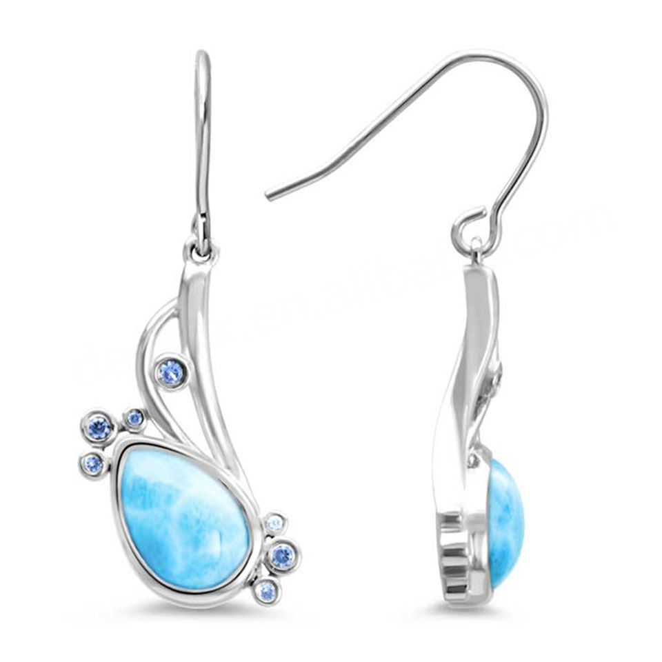 Sterling Silver Larimar with Blue Zirconia Stone Gemstone Drop Dangle Earrings