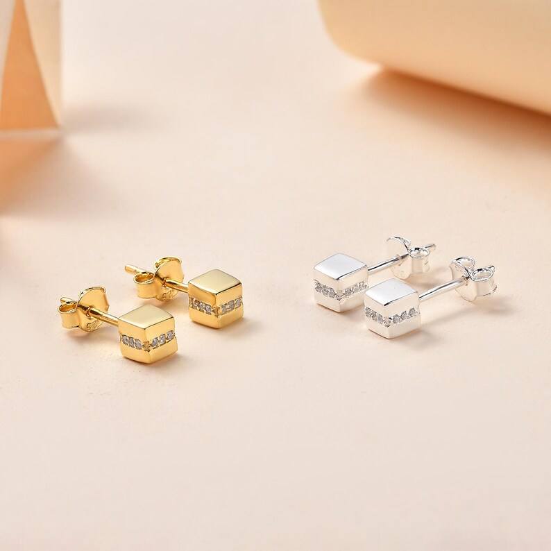 Sterling Silver Minimalist Stud Earrings Tiny Square Design CZ Studs Gold Plated Earrings For Women Elegant Easter Gifts For Her
