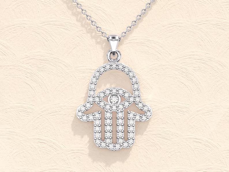 Sterling Silver Moissanite Hamas Necklace Diamond Good Luck Charm Customized Engagement Ring Pendant Men Women Hip Hop Style