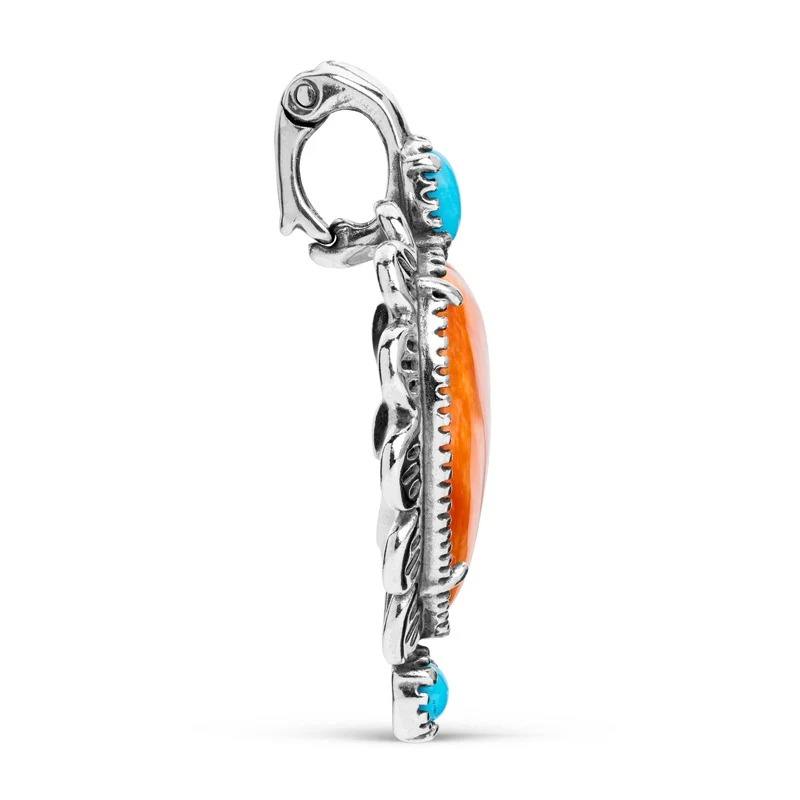 Sterling Silver Orange Spiny Oyster and Sleeping Beauty Turquoise Heart Pendant Enhancer 925 Sterling Silver Handmade Pendant
