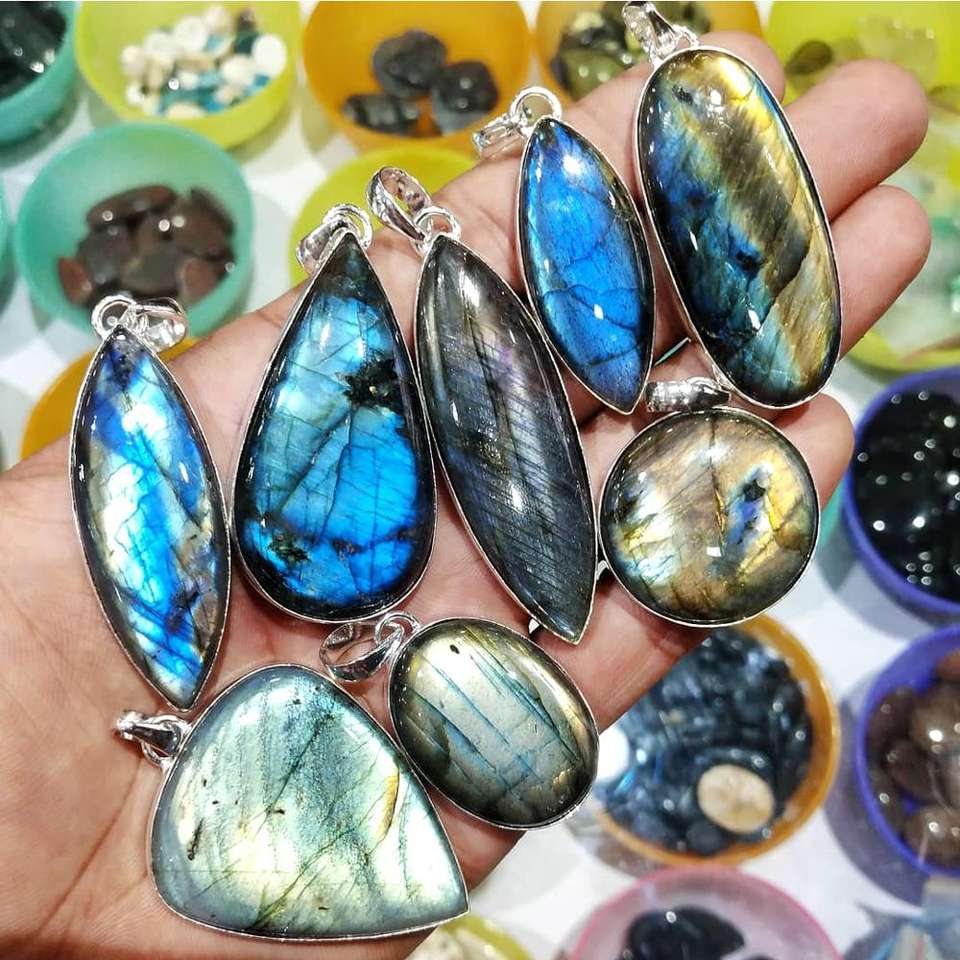 Sterling Silver Overlay Labradorite Gemstone Bezel Setting Pendant Unisex Wedding Fashionable Necklace