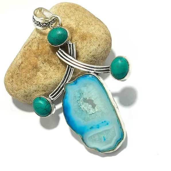 Keyword:Blue Druzy Turquoise Pendant Sparkling Blue Druzy Turquoise Stones