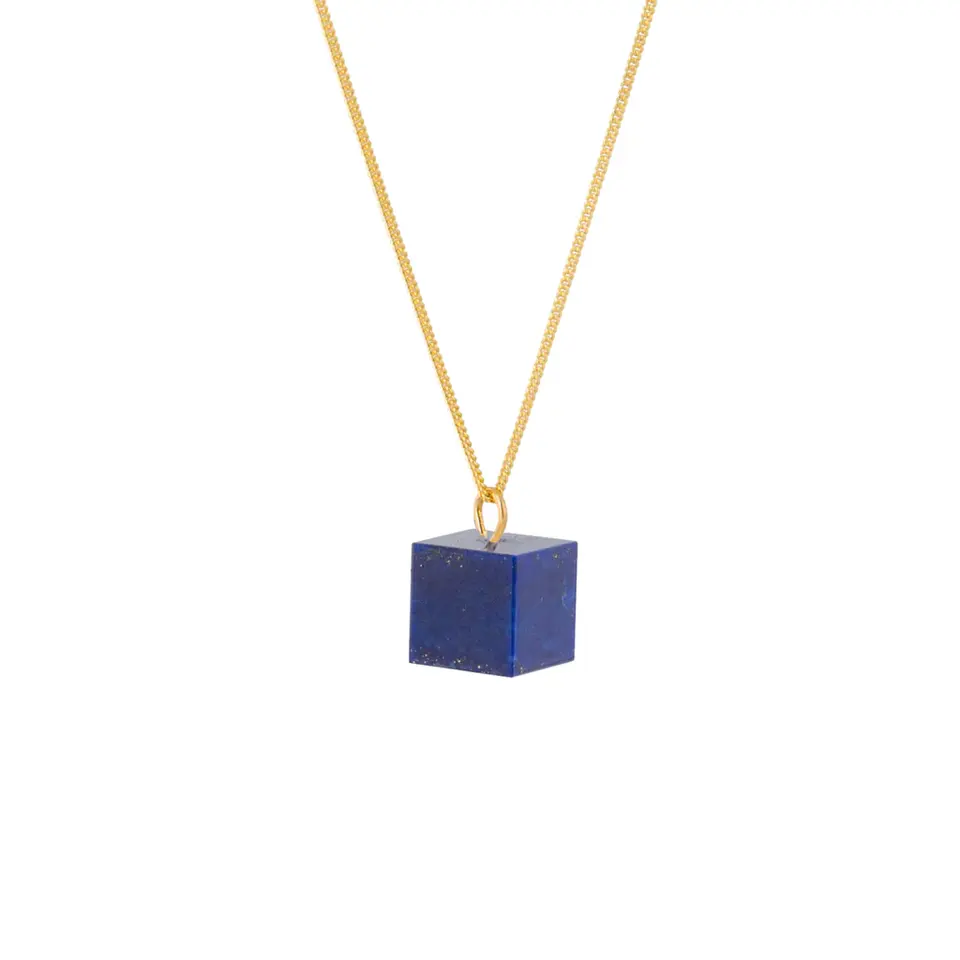 Sterling Silver Polished Classic Lapis Lazuli Natural Blue Cube Stone Pendant Necklace