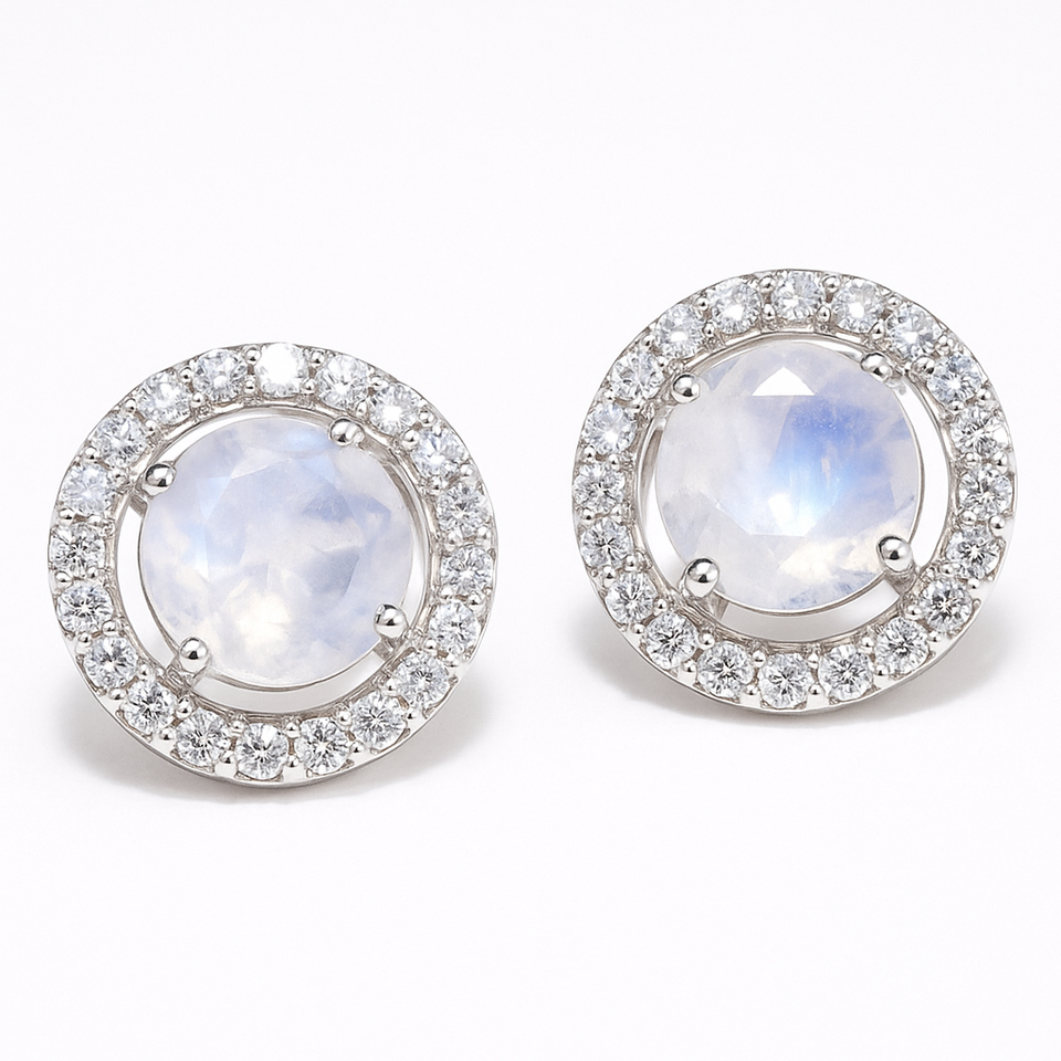 moonstone(cut):6mm round shaped (2pcs) Prong Setting