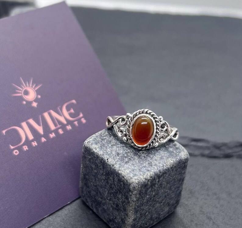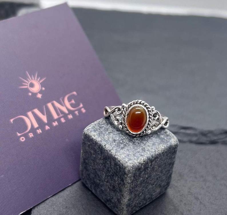Sterling Silver Red Carnelian Ring Minimalist Design Natural Gemstone Handmade Jewelry Bohemian Ring For Her