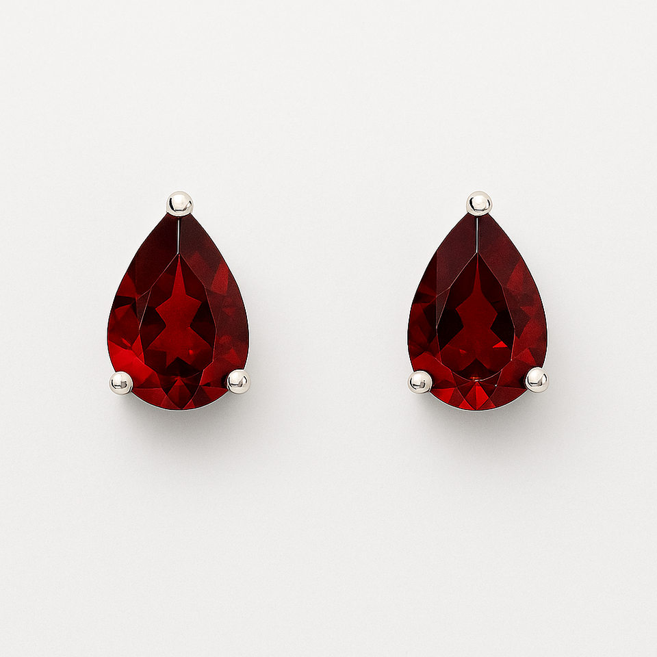 Sterling Silver Rhodium-Plated Garnet Pear Cut Stud Earrings for Women Children-Romantic Gift Jewelry for Weddings Parties