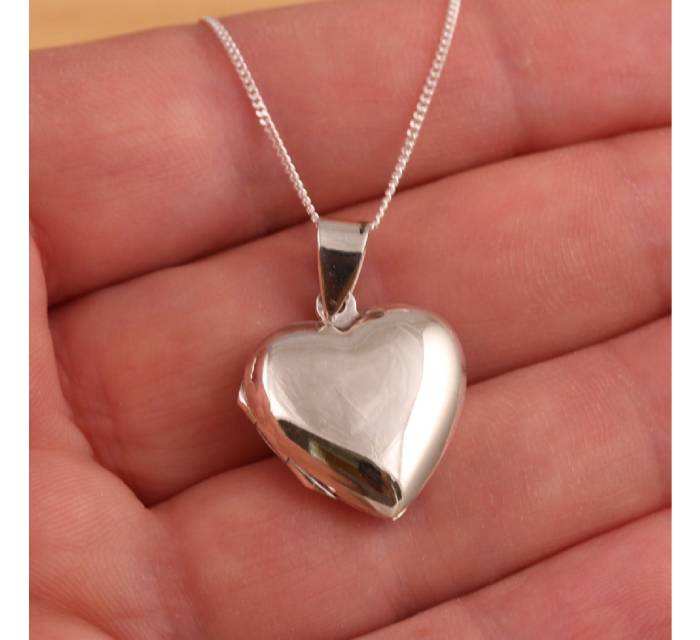 Sterling Silver Solid 925 Plain Love Heart Photo Locket Pendant Necklace Curb Chain Highly Polished Both Fashionable Body Chain