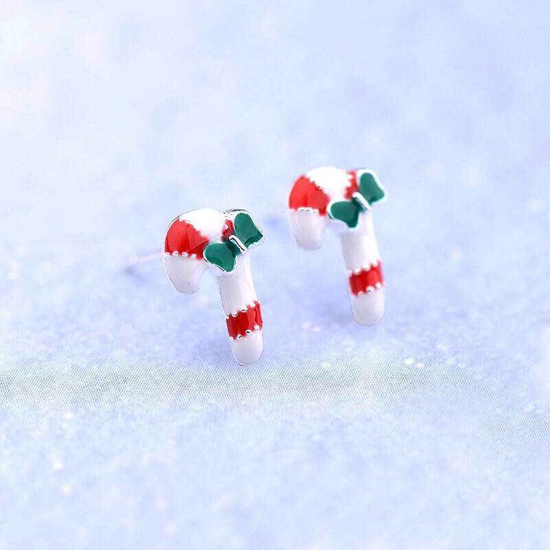 Sterling Silver Stud Earrings Diamond Zircon Pearl Trendy Christmas Candy Cane Animal Pattern for Weddings Anniversaries Parties